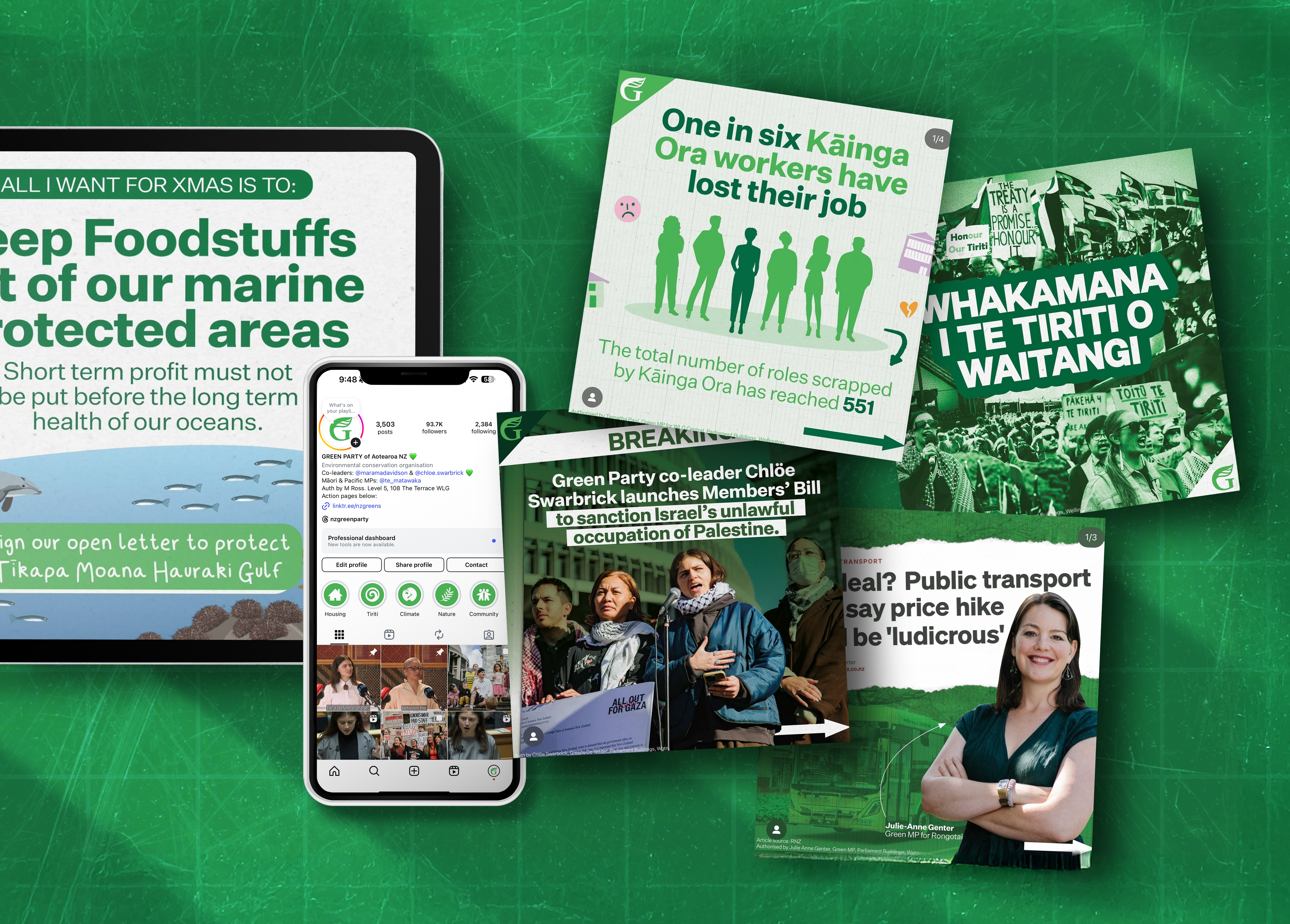 Content generation for the Green Party’s social media, creating visuals that reflect our values and connect with our audience. My work helps communicate important messages in a way that’s engaging, approachable, and in line with the party’s vision.